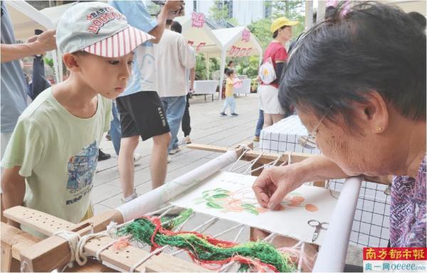 2024年黄埔区职工七夕国潮游园会,刺绣技艺引孩子注目。 南都、N视频记者 梁炜培 摄