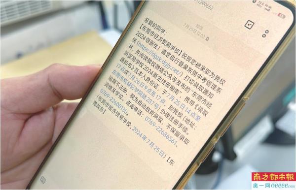 短信显示,学生应携带《录取通知书》及本人身份证,于7月25日14点至17点或7月26日9点至17点,到东莞市经贸学校办理注册手续,逾期不注册,视为自动放弃录取,不保留录取资格及学位。公开资料显示,东莞市经济贸易学校是东莞市教育局直属公办全日制中等职业学校,学制3年,全寄宿管理。