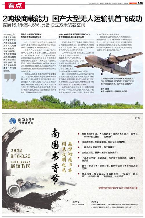 8月11日上午,我国自主研发的大型双发无人运输机在四川自贡凤鸣通航机场进行了首次飞行试验,首飞取得圆满成功。