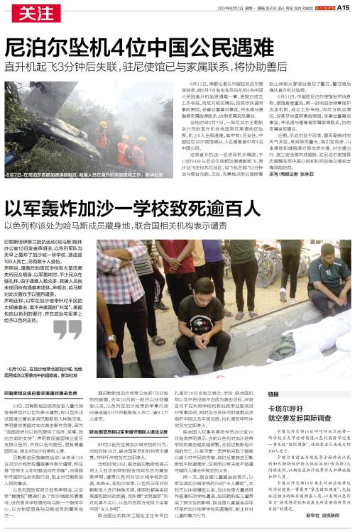 8月11日,南都记者从中国驻尼泊尔使馆获悉,就8月7日发生在尼泊尔的4名中国公民因直升机坠毁遇难一事,使馆已成立工作专班,向尼方核实情况,促其尽快查明事故原因。