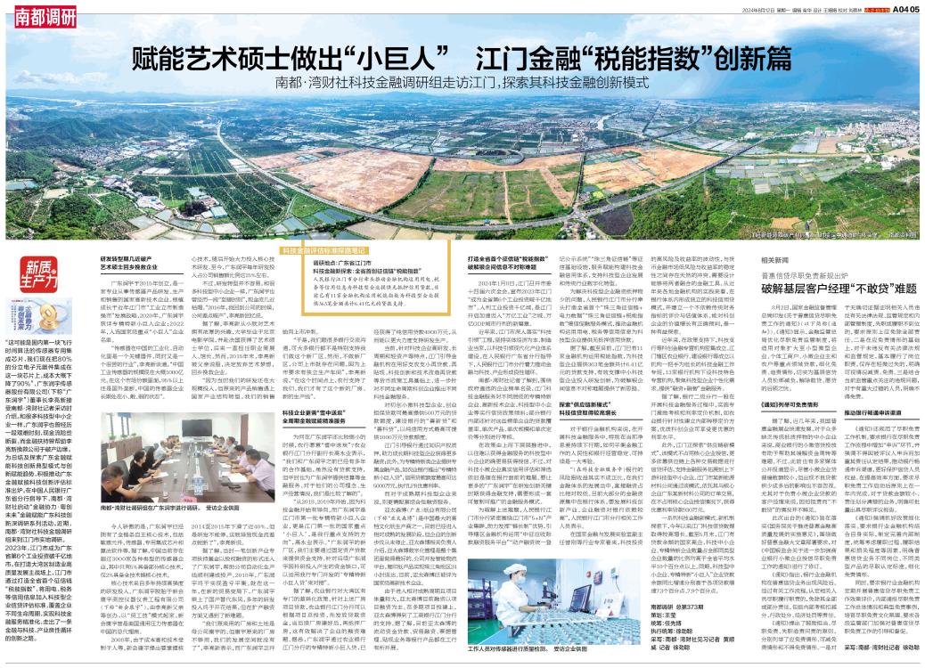 赋能艺术硕士做出“小巨人”江门金融“税能指数”创新篇