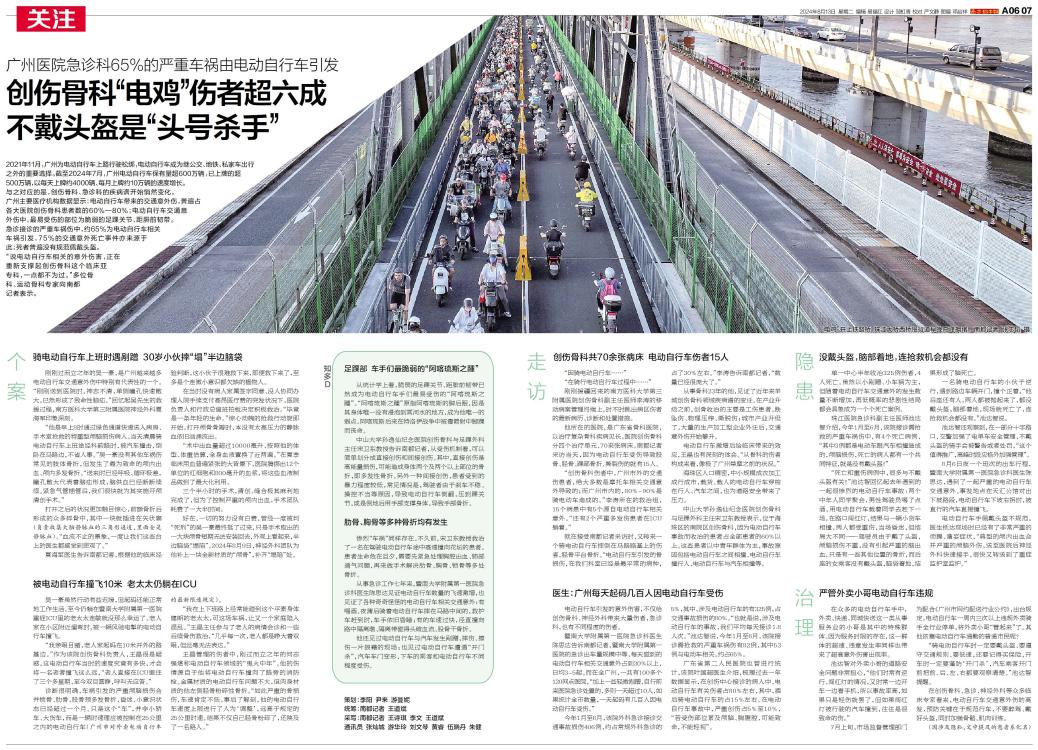 “创伤骨科伤者中,广州市外的交通伤患者,绝大多数是摩托车相关交通意外导致的;而广州市内的,80%-90%是骑电动车造成的。”李涛所在的救治组,15个病患中有5个源自电动自行车相关意外。“还有2个严重多发伤患者在ICU躺着。”