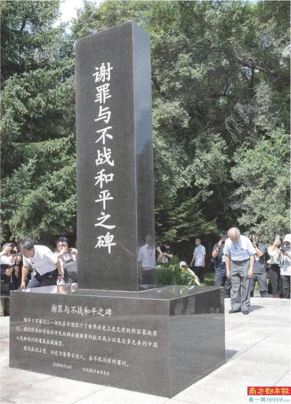 8月13日,侵华日军第七三一部队“少年队”原队员清水英男在侵华日军第七三一部队旧址“谢罪与不战和平之碑”前忏悔谢罪。新华社发