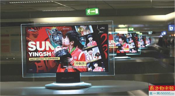 德国法兰克福机场,乒乓球运动员孙颖莎粉丝为其投放应援广告。 受访者供图