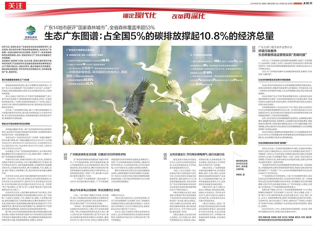 生态广东图谱:占全国5%的碳排放撑起10.8%的经济总量
