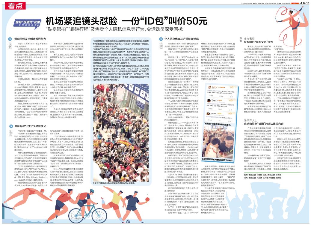 “怼脸拍”“贴身跟拍”“代拍”“跟踪行程”等越界行为令运动员们不堪其扰,而疯狂的体育粉丝经济也催生了一条灰色产业链,运动员个人隐私遭泄露等问题不容忽视。