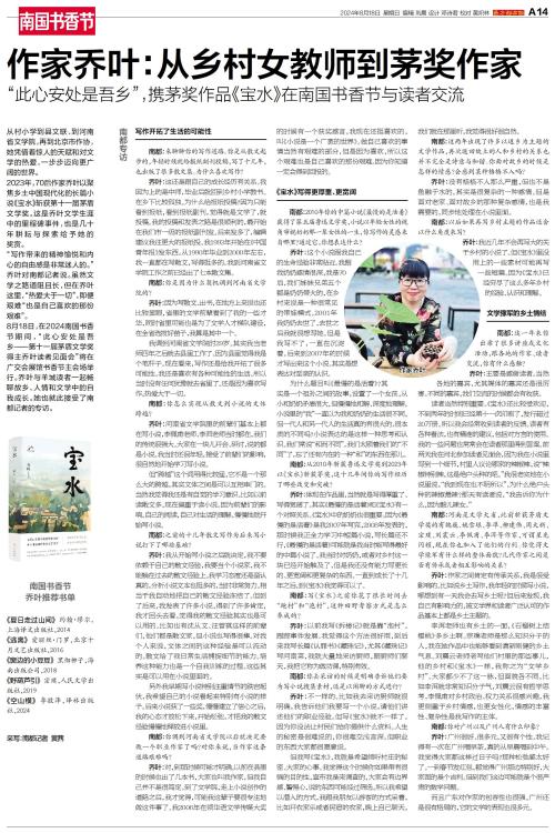 8月18日,在2024南国书香节期间,“此心安处是吾乡——第十一届茅盾文学奖得主乔叶读者见面会”将在广交会展馆书香节主会场举行。乔叶与羊城读者一起畅聊故乡、人情和文学中的自我成长。她也就此接受了南都记者的专访。