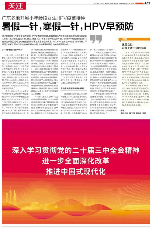 2024年暑期,广东省多地市迎来HPV疫苗接种热潮,积极响应《广东省加速消除宫颈癌行动计划(2023-2030)》。