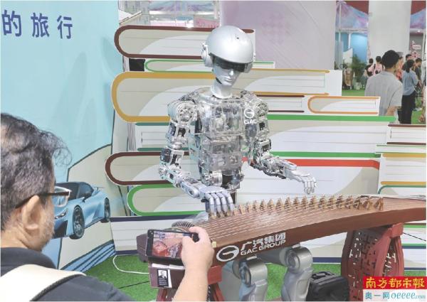 机器人弹奏古筝,市民纷纷驻足观赏。