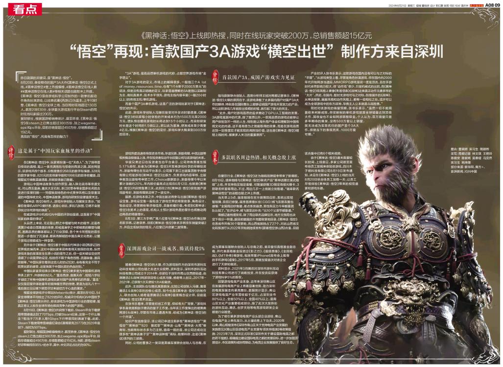 “悟空”再现:首款国产3A游戏“横空出世” 制作方来自深圳