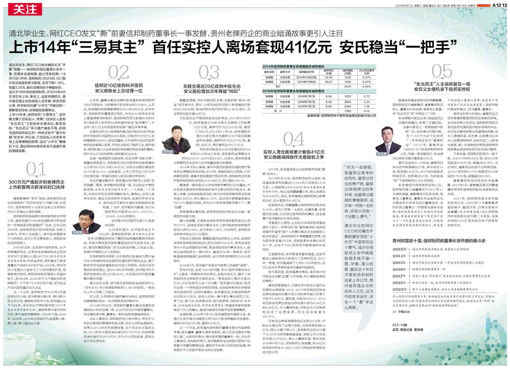 上市14年“三易其主” 首任实控人离场套现41亿元 安氏稳当“一把手”