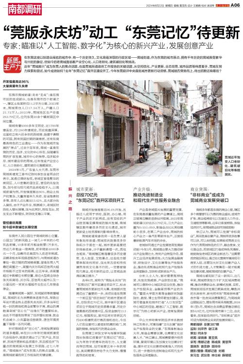 分析人士人为,面对要素瓶颈收紧、先发优势减弱、产业软肋日显,“莞城可以借助中心城区的区位优势,推动生产性服务业、金融商贸等产业的升级。”暨南大学南方高等金融研究院副院长、教授、博士生导师谢宝剑建议,莞城可借鉴其他城市打造“人口友好型”中心城区的经验,瞄准以“人工智能、数字化”为核心的新兴产业,培育发展新动能。
