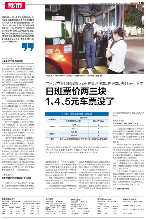 8月21日,广州市发展改革委印发《广州市发展和改革委员会关于优化调整我市公共汽车电车基础票价的通知》,对广州公交基础票价机制进行调整。