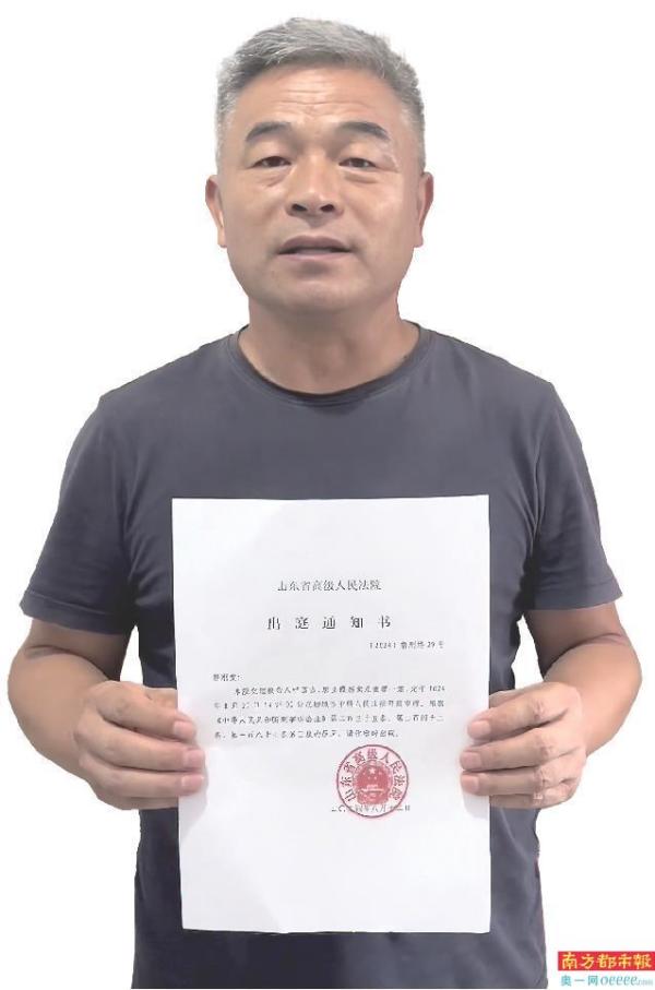 今年二审开庭前,郭刚堂展示《出庭通知书》。