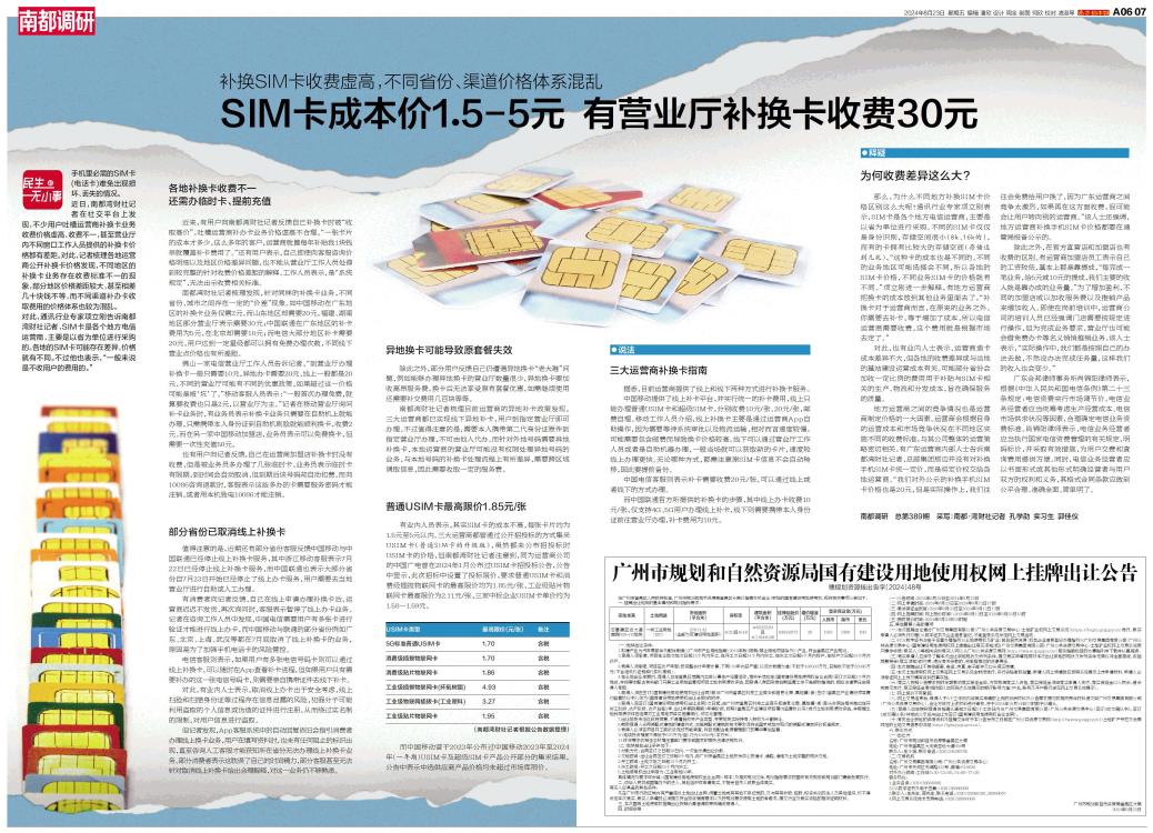 近日,南都湾财社记者在社交平台上发现,不少用户吐槽运营商补换卡业务收费价格虚高、收费不一,甚至营业厅内不同窗口工作人员提供的补换卡价格都有差距。