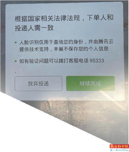 丰巢客服人员告诉记者,只要使用丰巢自助寄件,无论选择哪家快递公司提供服务,都需“刷脸”验证身份,该要求已在全国推广。此举是响应国家邮政局的实名寄件要求,为了加强智能柜自助寄件的实名安全性,同时避免柜机硬件不能支持活体验身的硬件限制。