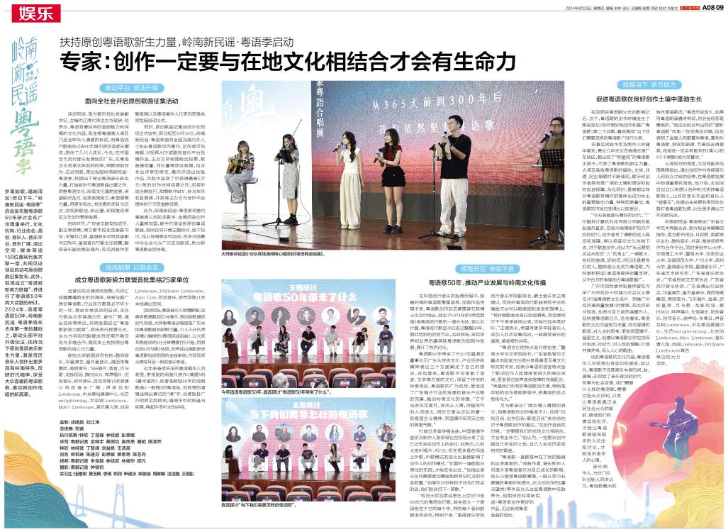 岁粤如歌,唱响湾区!昨日下午,“岭南新民谣·粤语季”启动发布暨粤语歌50年研讨会在广州隆重举行。