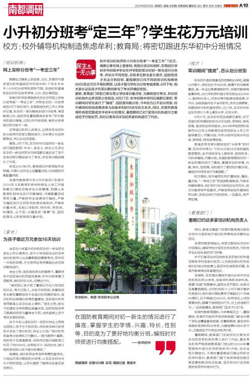 近日,南都记者在网上留意到,有部分培训机构称,东莞民办学校东华初级中学会在开学前的军训对初一新生进行分班考,并划分不同班型。