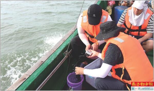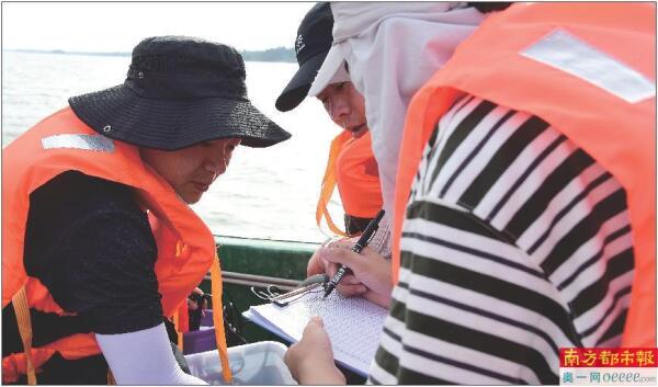 科研工作者记录中华白海豚栖息环境的水质量数据。