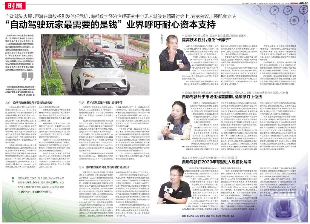 多位专家提到,当务之急除了修改《道路交通安全法》,明确自动驾驶交通规则,还应当关照到自动驾驶行稳致远的配套制度保障,尤其是妥善应对潜在安全事故和就业市场转型可能带来的公众压力。