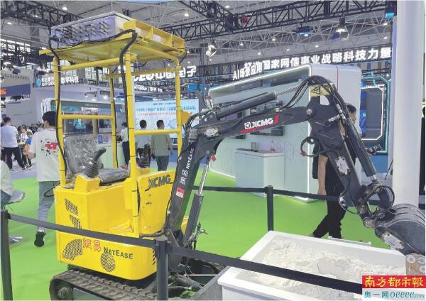 在网易集团展台附近,南都记者看到一台黄色挖掘机正在施工,不过驾驶室内并没有人,一切动作都是机器自动完成。这是网易集团在实体产业工程领域的一大新作——网易灵动工程机器人,包括挖掘机器人和装载机器人等。