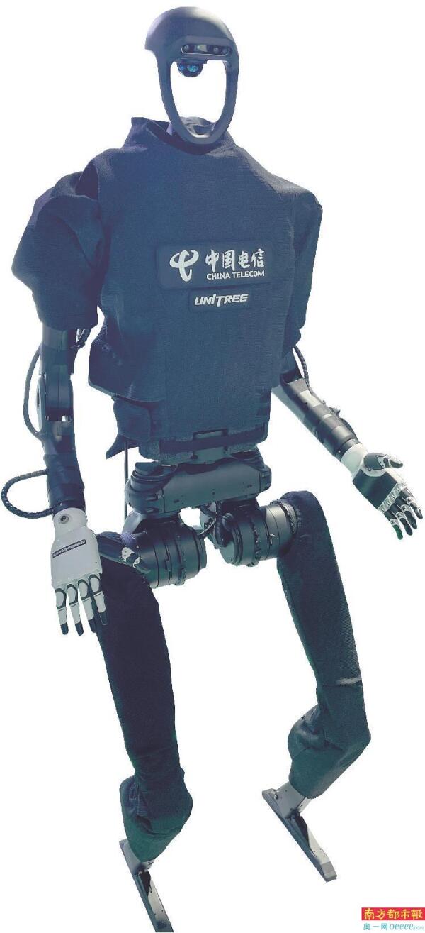 “真是科技改变生活啊,等老了就有机器人保姆照顾我了,还没有雇佣矛盾!”南都记者听到一位观众发出感慨。原来,吸引众多目光的是中国电信展台上的一款人形机器人。它在去年由宇树科技首发,型号名称为H1,据称是全球近似规格动力性能最强的通用人形机器人。H1通体漆黑,没有特别精致的外表,除了整体形态及一双“手”与人类相似,其他“身体”部位基本都是硬件设备的原始模样。