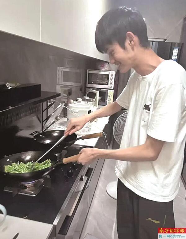 盛李豪回家后给爸妈炒菜。 图片来源:视频截图