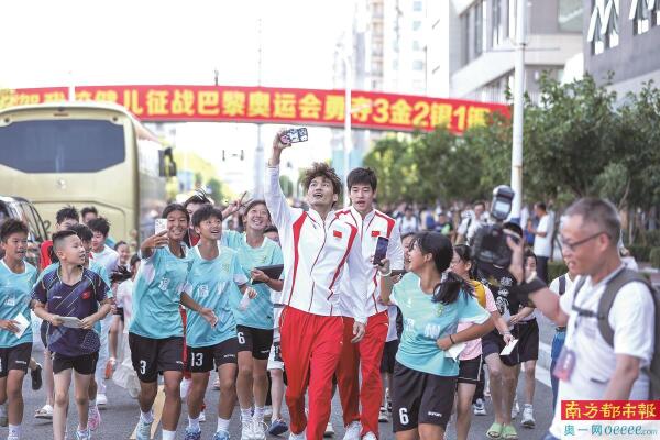潘展乐、徐嘉余和郑思维等8名温州籍运动员则一同回到了温州体校,受到师生热烈欢迎。潘展乐在采访中表示:“希望师弟师妹们好好加油,努力训练。有师弟对我说,以后一定会超过我。我觉得这样很好,希望每个人都有这样的目标,然后去执行去奋斗,这样体育才有意思。”