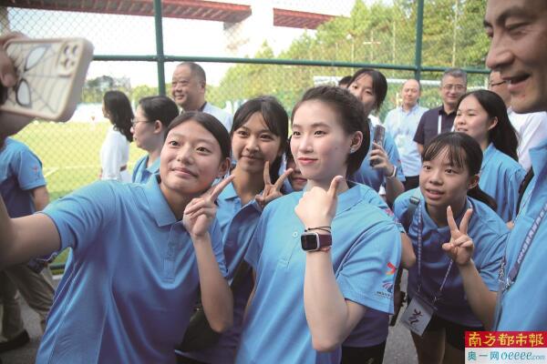 值得一提的是,除了体校外,跳水冠军全红婵在广州期间还回到了她的学籍所在校——广东实验中学,与同龄人展开了趣味交流。活动现场,全红婵不但向同学们分享了她的精彩奥运故事,讲述了自己成长中的挑战与收获,还现场带领同学们学习水花消失术的手部动作要领,一起享受运动的乐趣。