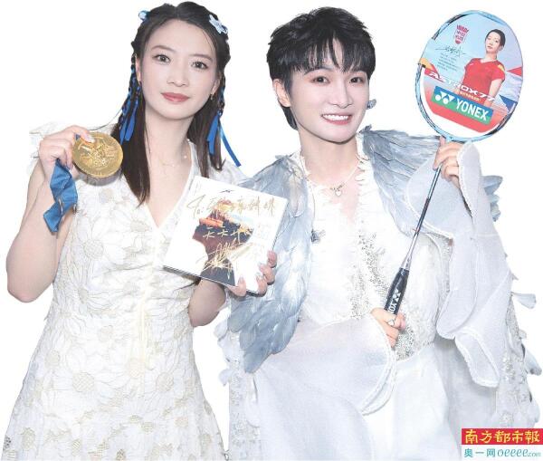 除了逛乐园外,不少运动员还选择去到心仪歌手的演唱会现场,国羽选手郑思维便在重庆看了GAI周延的演唱会;王昶在成都看了Jony J的演唱会;在巴黎完成订婚的小情侣黄雅琼和刘雨辰则在过完七夕节的次日,现身周深南京演唱会;而贾一凡、陈雨菲、黄东萍则出现在张杰北京演唱会的现场;竞走冠军杨家玉也受邀现场听了邓紫棋的北京演唱会。如果说听演唱会还不过瘾,郑思维和王昶还自制自唱了一首名为《告白羽毛球》的MV。不过他俩的唱功恐怕还是比不上“专业说唱歌手、兼职跳水冠军”龙道一,这位贵州小伙子回到老家后,现身榕江县的“村超”现场,不仅上台献唱,还参加了足球赛,给本就火爆的榕江旅游再添新热点。