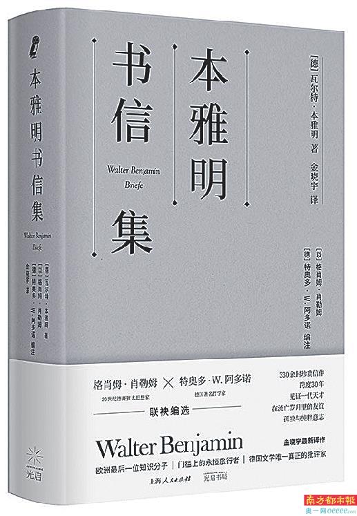 本期“南都书单”重点向大家推荐《本雅明书信集》一书。本雅明是欧洲现代最有影响的思想家和文学批评家之一,《本雅明书信集》收录他的300余封信件,跨度30年。读此书,可见证一代天才人物在流亡岁月中的友谊、孤独与意志。该书由德国大哲学家阿多诺、德裔思想家格肖姆·肖勒姆联袂编注,译者金晓宇倾情献译,力图还原本雅明不凡的文字风格。