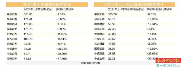 2024年上半年,归母净利润超过10亿元的还有14家,包括招商证券、中国银河、广发证券、东方财富、国信证券、中信建投、中金公司、申万宏源、东方证券、光大证券、方正证券、国投资本、东吴证券、国元证券。