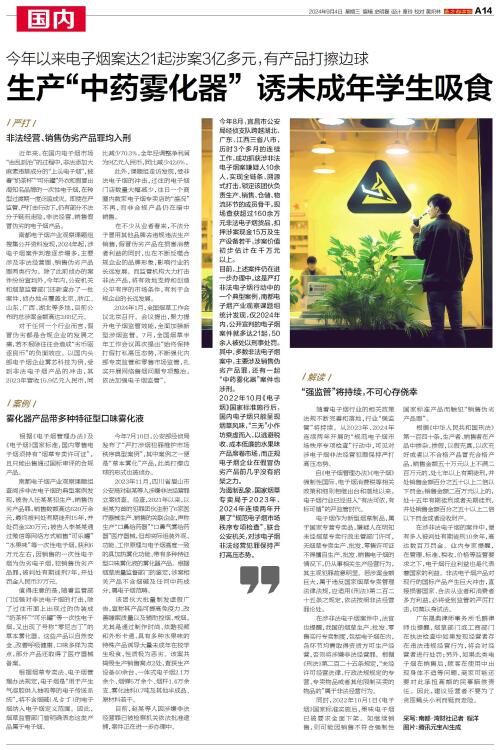 为遏制乱象,国家烟草专卖局于2023年、2024年连续两年开展了“规范电子烟市场秩序专项检查”,联合公安机关,对涉电子烟非法经营犯罪保持严打高压态势。