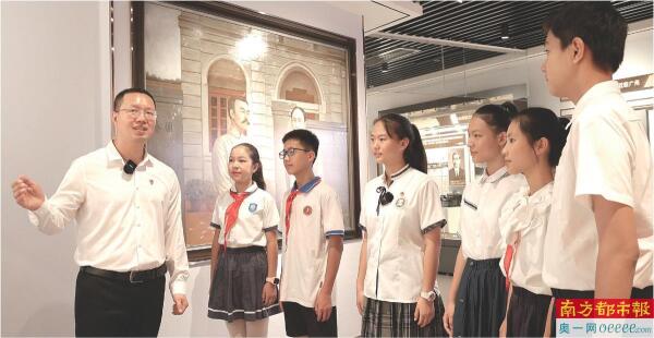 “1923年4月,中共中央从上海移驻广州,位于新河浦路的春园成为中共中央机关所在地。”“1972年,年近八旬的中共三大代表徐梅坤协助调查组寻找党的三大会址。通过逵园建筑上的‘1922’4个数字最终确认了中共三大的会址。”手持地图,少年们站在红色遗迹前缓缓道出广州东山的革命历史故事。