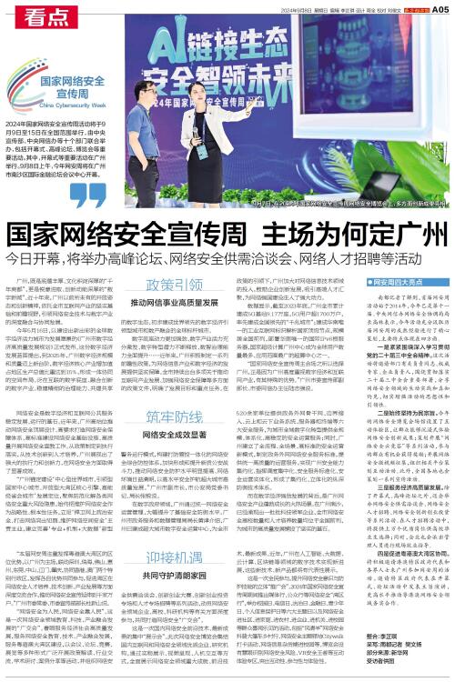 2024年国家网络安全宣传周活动将于9月9日至15日在全国范围举行,由中央宣传部、中央网信办等十个部门联合举办,包括开幕式、高峰论坛、博览会等重要活动。