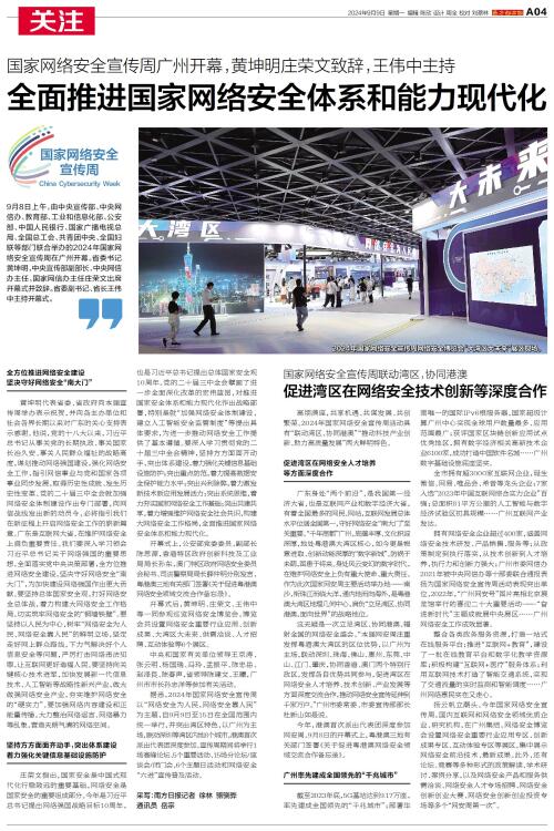 9月8日上午,2024年国家网络安全宣传周在广州开幕。