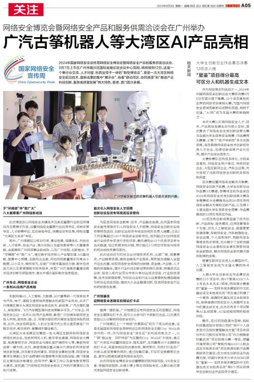 2024年国家网络安全宣传周网络安全博览会暨网络安全产品和服务供需洽谈会,9月7日上午在广州市南沙区国际金融论坛会议中心亮相,将持续到12日。