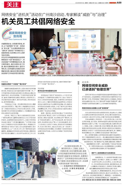 昨日,以“当好网络‘守门员’ 共筑安全‘防火墙’”为主题的网络安全“进机关”活动在广州市南沙区人民政府启动,机关单位工作人员参与此次活动。
