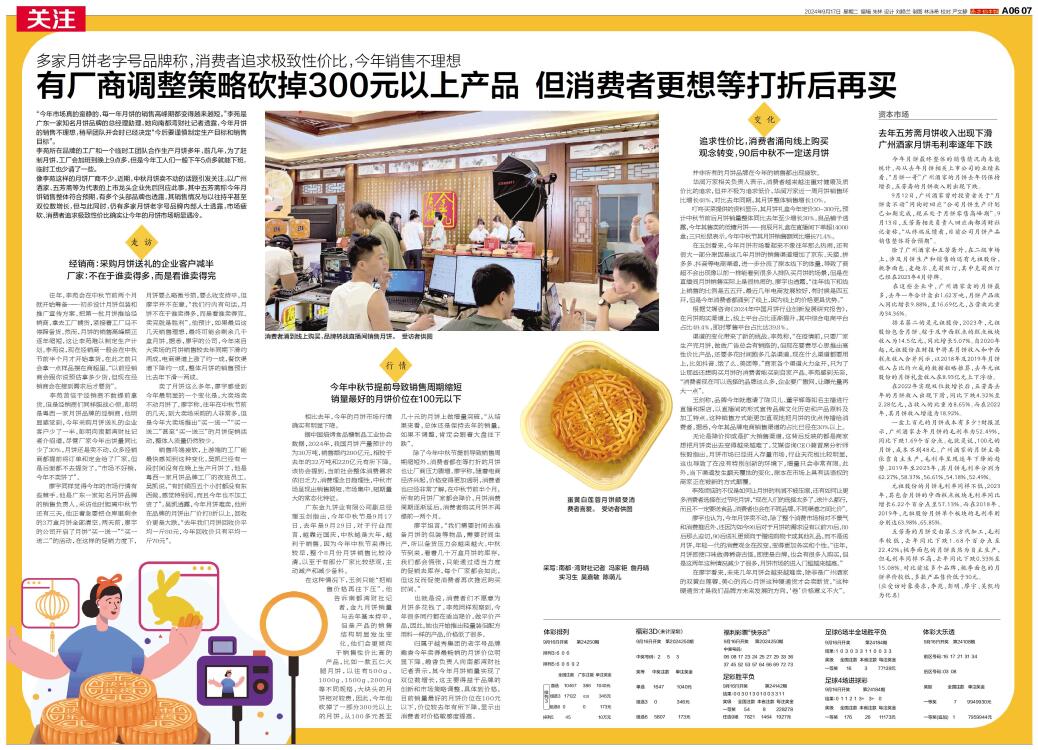 像李苑这样的月饼厂商不少。近期,中秋月饼卖不动的话题引发关注。以广州酒家、五芳斋等为代表的上市龙头企业先后回应此事,其中五芳斋称今年月饼销售整体符合预期,有多个头部品牌也透露,其销售情况与以往持平甚至双位数增长,但与此同时,仍有多家月饼老字号品牌内部人士透露,市场疲软、消费者追求极致性价比确实让今年的月饼市场明显遇冷。