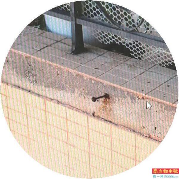 22层装饰条及内部钢筋已经全部脱落,仅剩内部铁钉裸露在外。