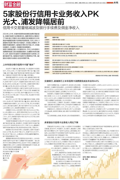 2024年上半年,伴随市场竞争的加剧和消费环境的变化,各银行信用卡业务备受关注。