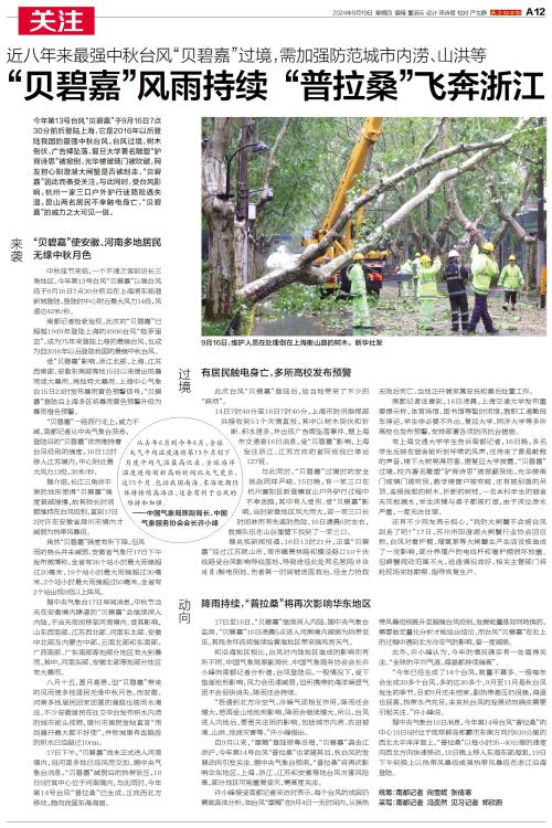 今年第13号台风“贝碧嘉”于9月16日7点30分前后登陆上海,它是2016年以后登陆我国的最强中秋台风。