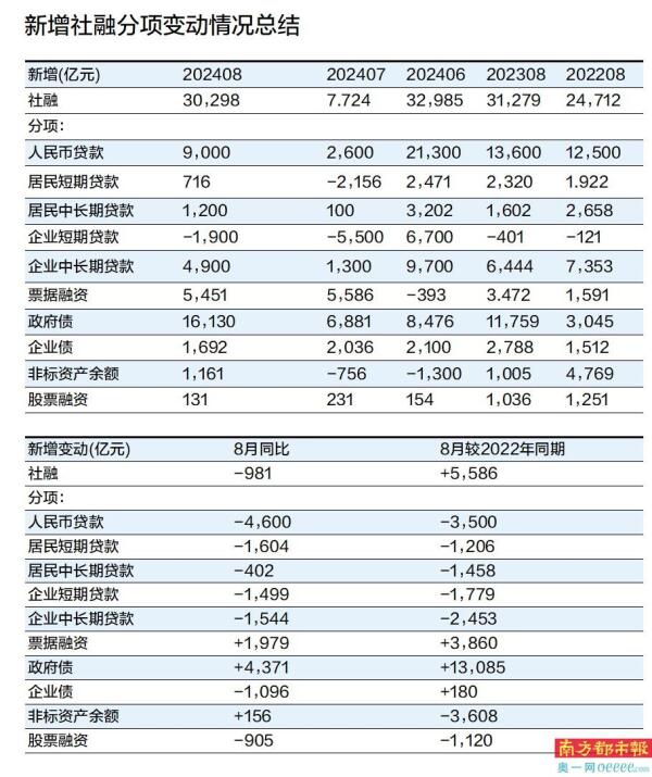 9月13日,央行公布的数据显示,8月新增社融规模为30298亿,同比少增981亿;存量社融增速8.1%,较上月下降0.1个百分点。