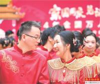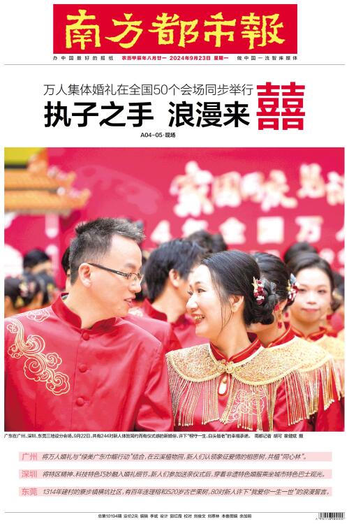 9月22日,以“家国同庆 见证幸福”为主题的2024年全国万人集体婚礼在全国50个会场同步举行,5000对新人参与。