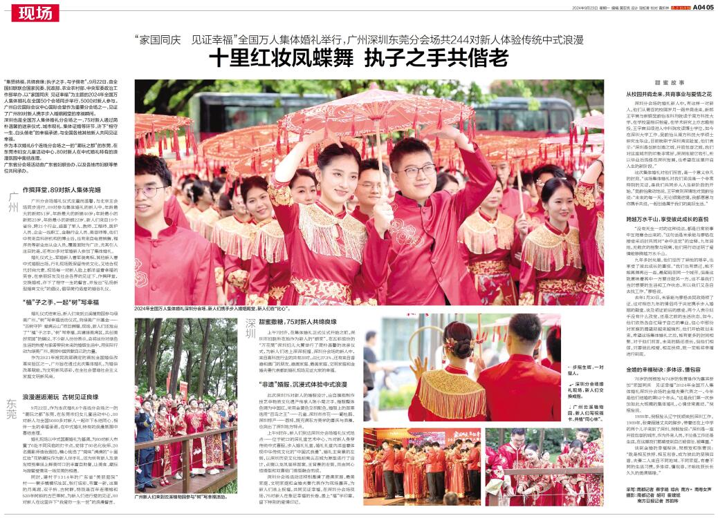 9月22日,以“家国同庆 见证幸福”为主题的2024年全国万人集体婚礼在全国50个会场同步举行,5000对新人参与。