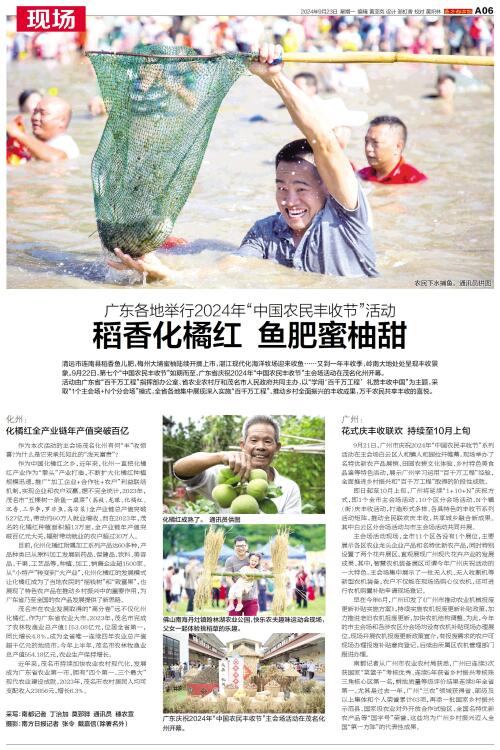 9月22日,第七个“中国农民丰收节”如期而至,广东省庆祝2024年“中国农民丰收节”主会场活动在茂名化州开幕。