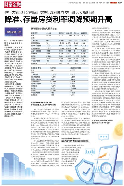9月13日,中国人民银行发布了8月金融统计数据。