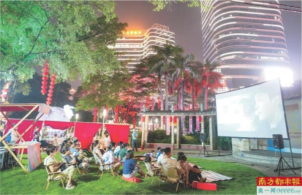 9月14日,“来广州 睇电影”主题展映启动仪式在海珠广场西广场举行,现场播放了露天电影。 主办方供图