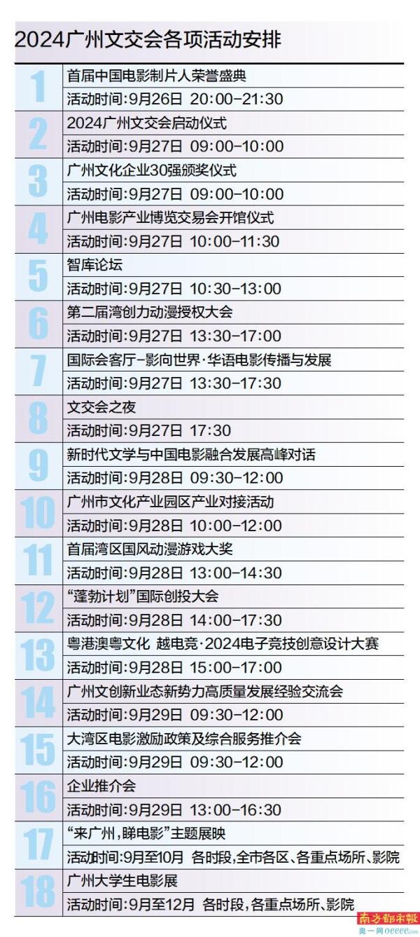 围绕数字文化时代下动漫游戏、文旅装备、数字电影等新业态、新场景,本届文交会吸引了超过1000家头部文化单位参展,近3000位商界精英和企业家代表参会。在文交会的启动仪式环节,将参照惯例,发布“广州文化企业30强系列评选”“新业态新势力榜单”,同时结合国内文创产业发展的形式,还将推出“2024广州文创新业态新势力排行榜”榜单。