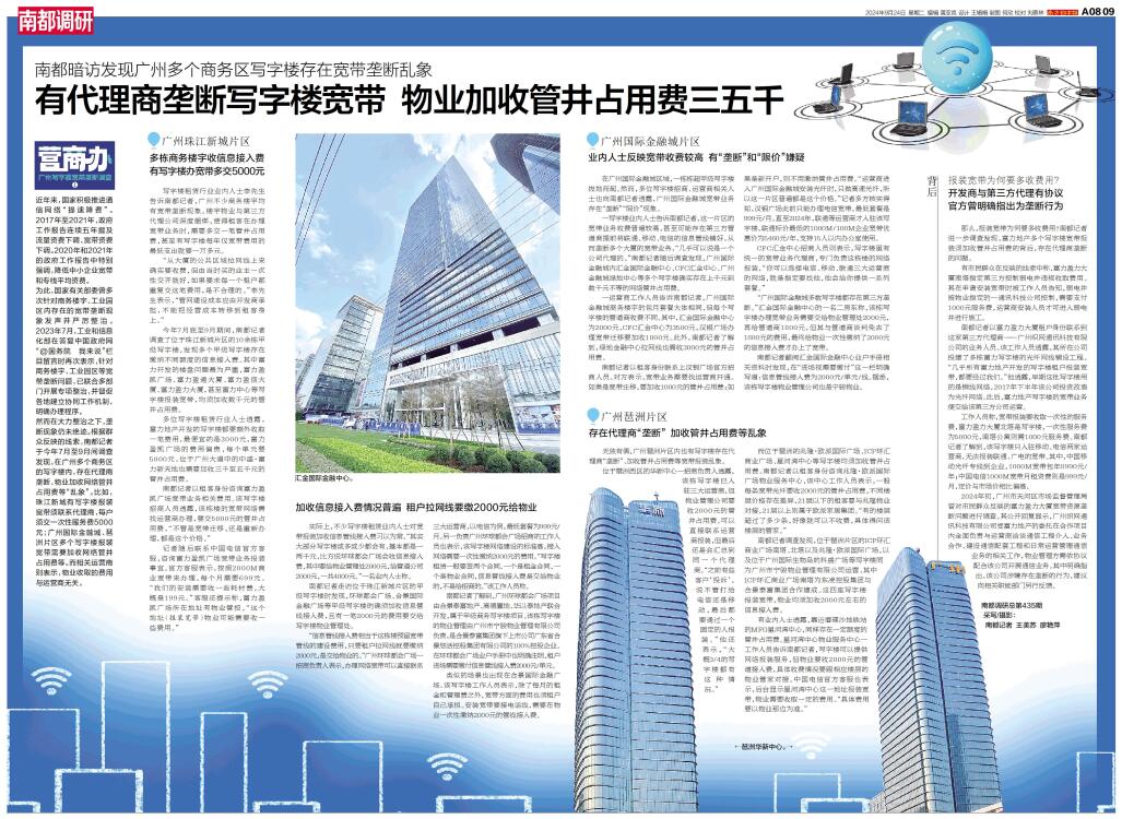 有代理商垄断写字楼宽带 物业加收管井占用费三五千